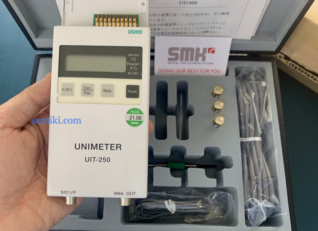 Thiết bị của USHIO (Nhật Bản) là tiêu chuẩn trong các ngành công nghiệp cần độ chính xác cao như sản xuất bán dẫn, sấy UV, và khử trùng. Để đo quang lượng (năng lượng tích lũy) và cường độ tia UV, hai dòng máy phổ biến nhất là UIT-250 và UIT-201
