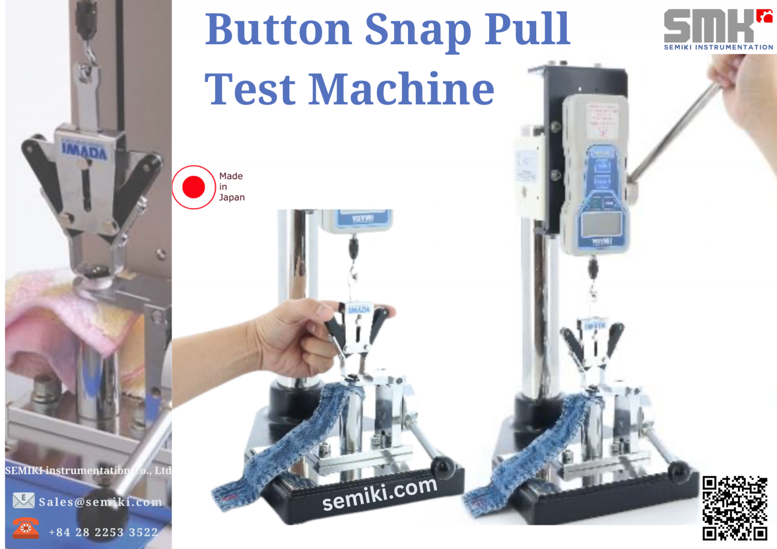 • The capability of the snap tester can be enhanced with the clamps & accessories for testing other Snaps, Jean Buttons, Four Hole Buttons & Garments Accessories such as Zippers, Bows, Appliqué, Toggles, Hooks/Bars, and D-Rings, among others. Apart from those mentioned before, you will find more applications for this push-pull test equipment for your testing purpose.