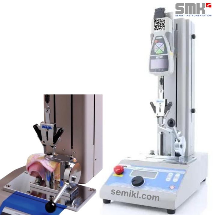 Consists of an Upper Snap Clamp, a Lower Fabric Clamp & Force Gauge mounted on a Stand.