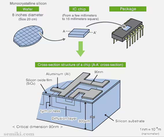 Mạch tích hợp (IC) là một thiết bị điện tử bao gồm nhiều linh kiện chức năng như transistor, điện trở, tụ điện, v.v. trên một tấm đế bán dẫn silicon và được đóng kín bên trong một gói với nhiều chân cắm. Hiện nay, kích thước tới hạn của IC (hay kích thước nhỏ nhất của các phần tử IC) vào khoảng 10 nanomet (nm: 10-9m), một kích thước cực kỳ nhỏ.
