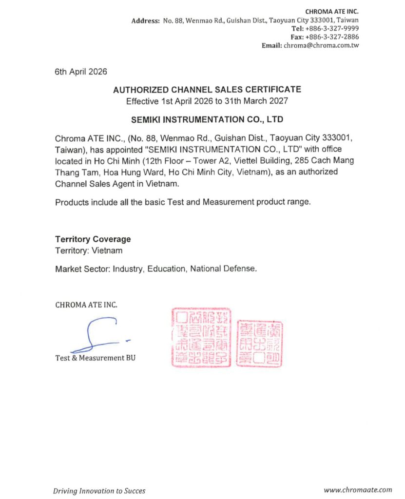 Công ty TNHH Thiết bị đo SEMIKI là đại lý ủy quyền chính thức của Chroma ATE tại Việt Nam.