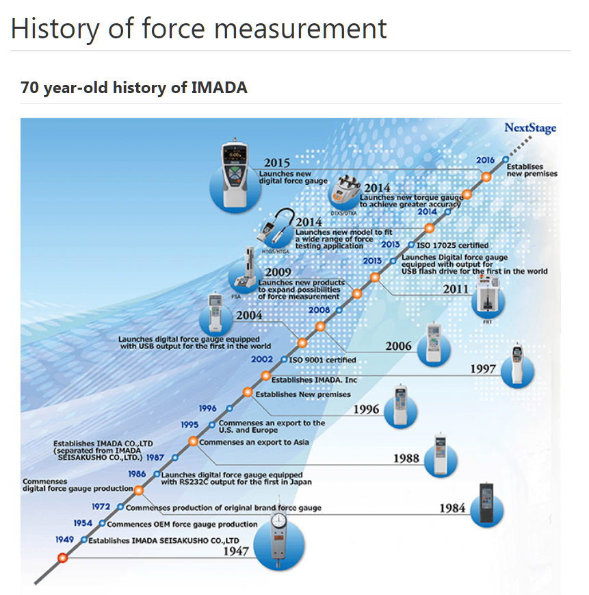 イマダは力測定の分野で 70 年以上の歴史を持ち、力試験装置の世界トップメーカーであることを誇りに思っています。