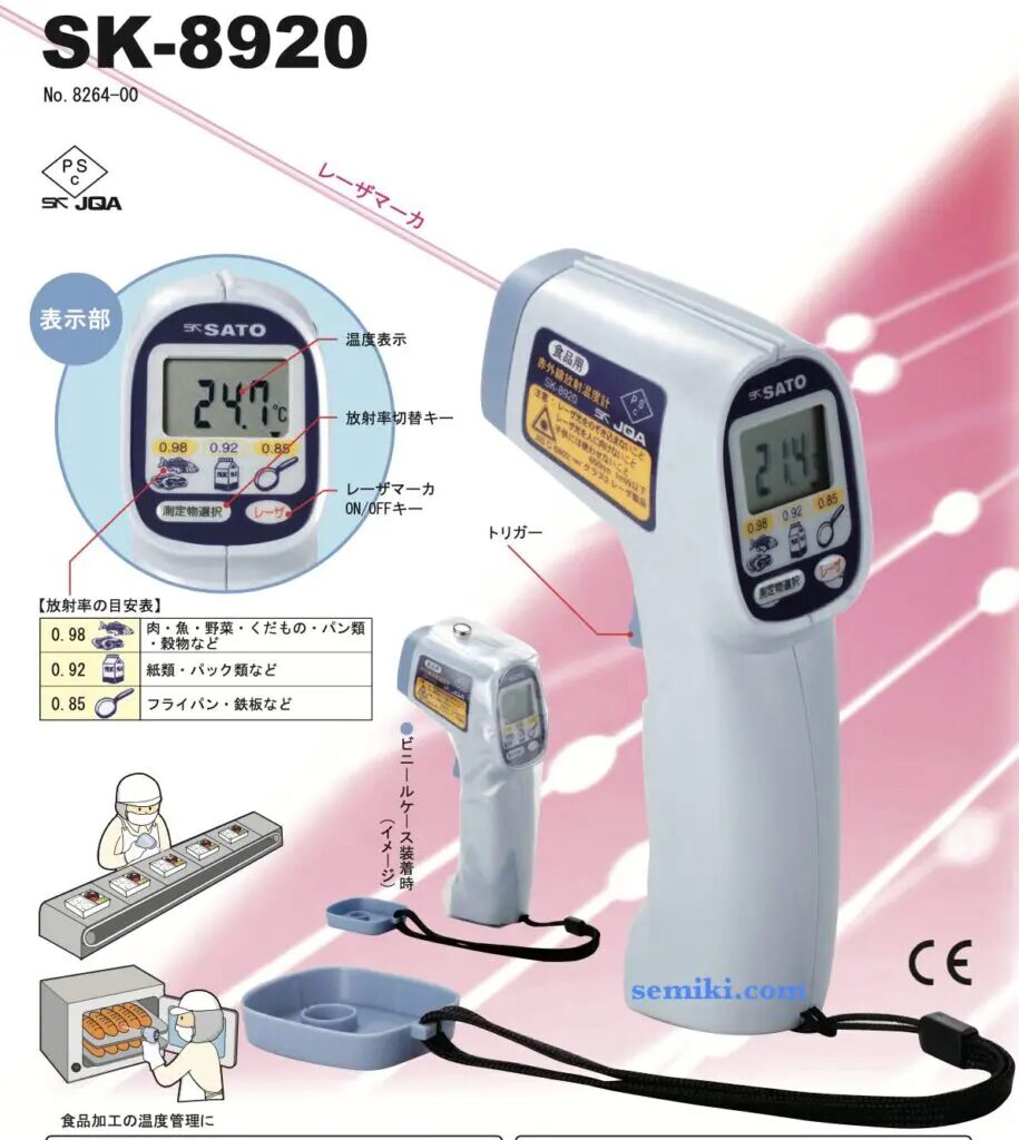 その一例としては サトー SK-8920 食品温度測定用赤外線温度計(−40~250℃)