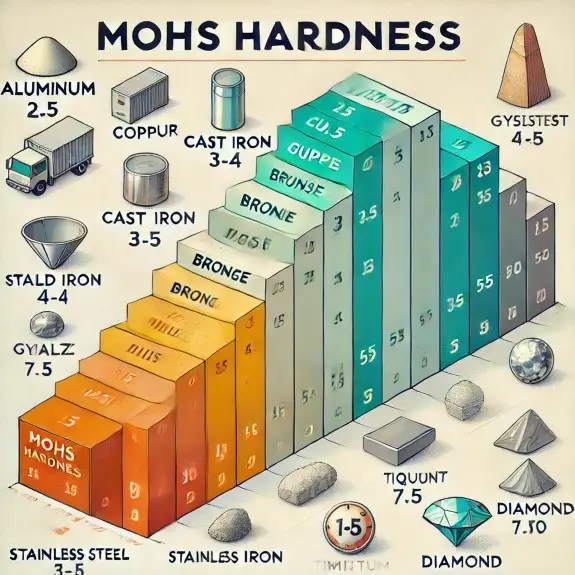 以下は、金属の硬度を表す一般的な尺度の比較表です。