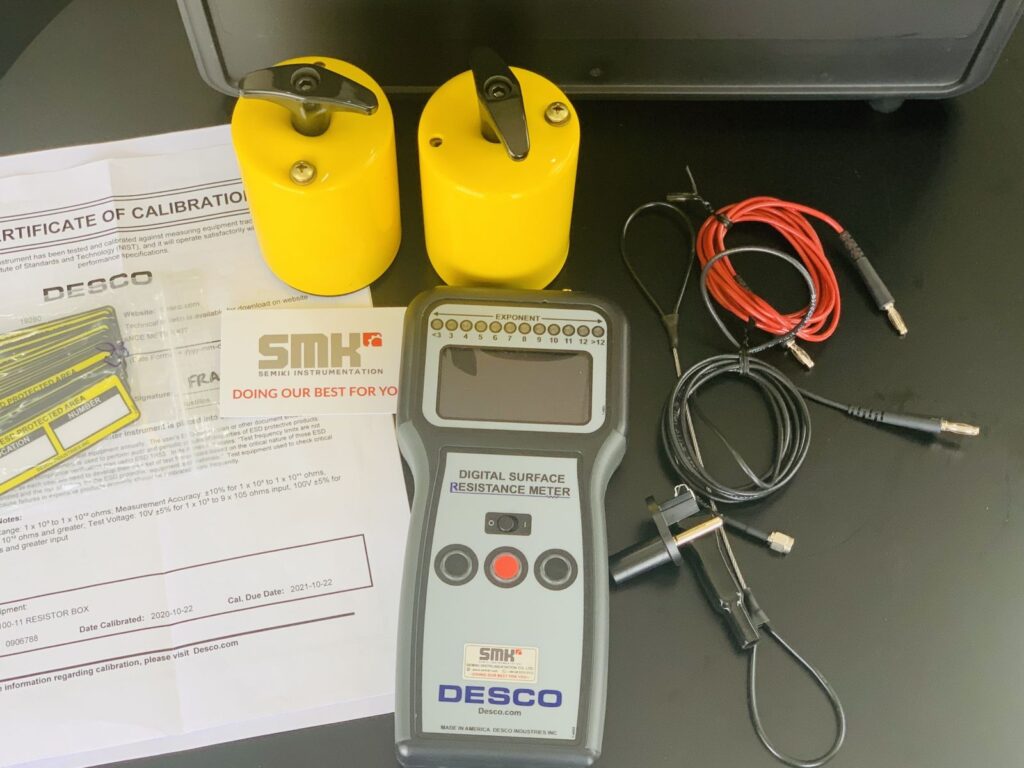 - Desco 19290 표면 저항 측정기: 정전기 표면 저항을 측정하도록 설계되었습니다.
