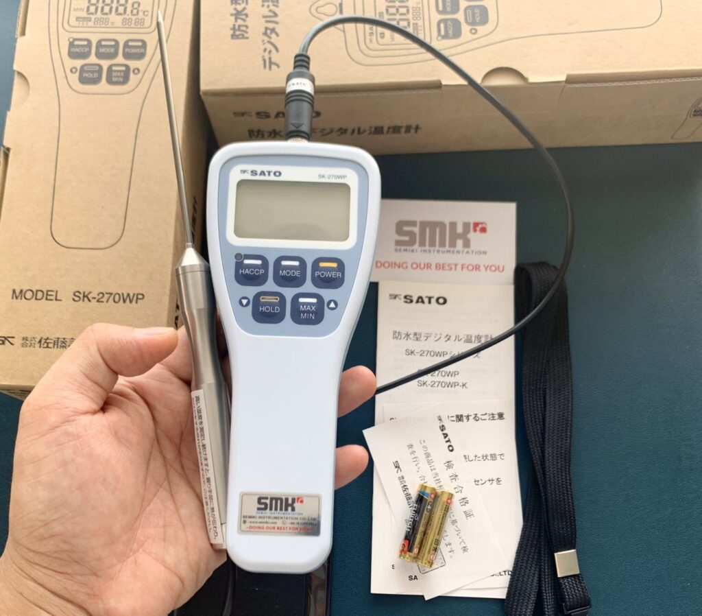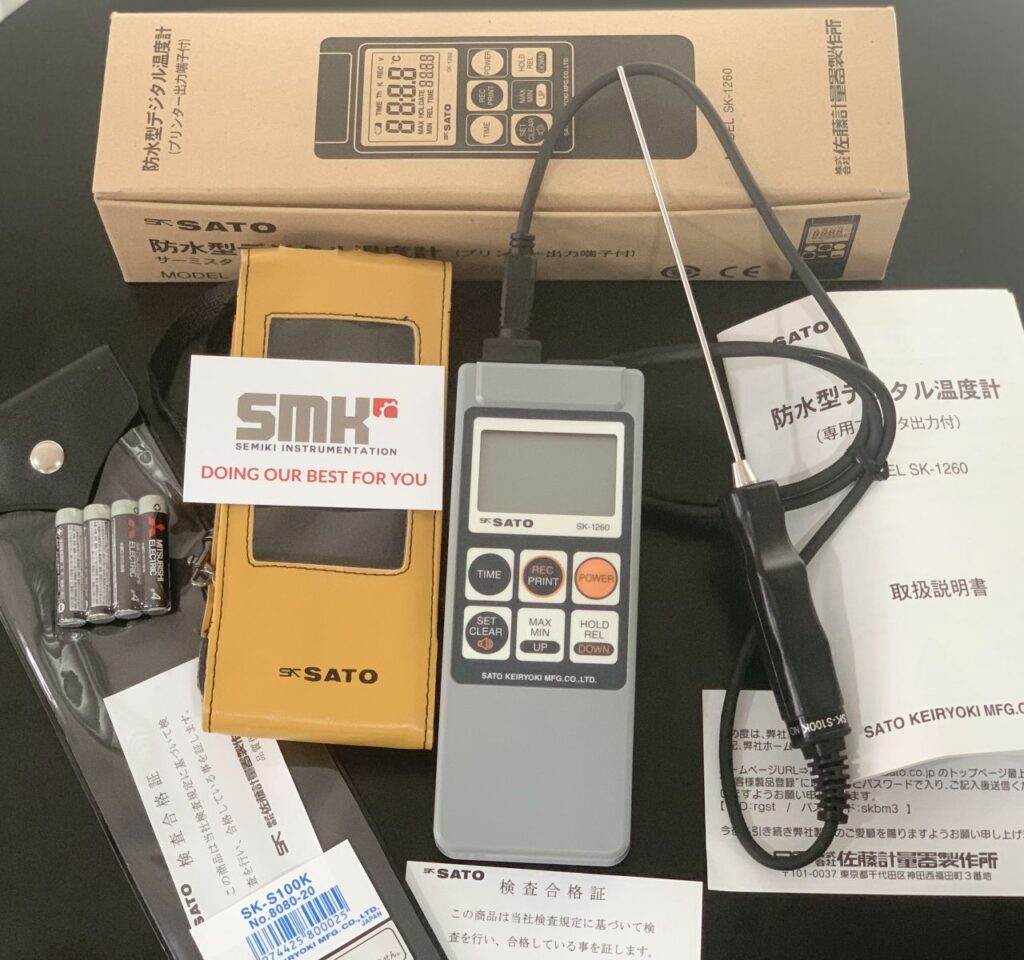 전자 온도계 사토 SK-270WP 용액의 온도를 측정하는 데 사용되는 분리형 프로브가 포함되어 있습니다.