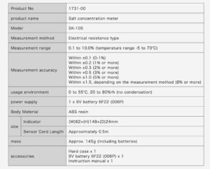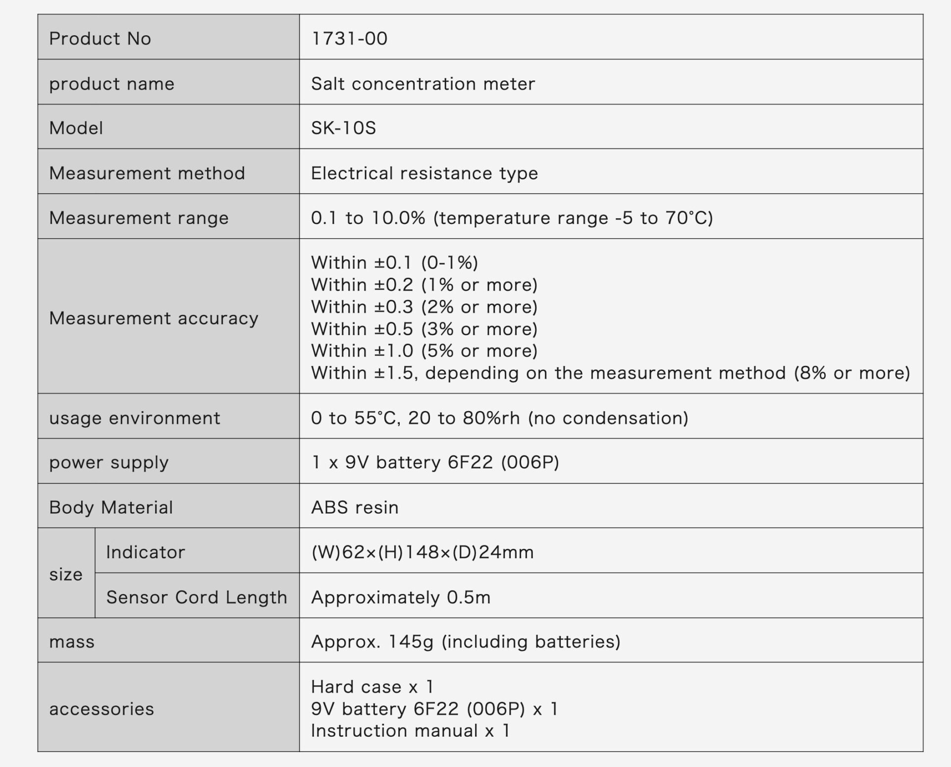 Máy đo độ mặn kỹ thuật số SATO SK-10S (0,1 đến 10,0% (phạm vi nhiệt độ -5 đến 70°C) dùng để đo hàm lượng muối trong thực phẩm giúp đánh giá độ mặn thức ăn.