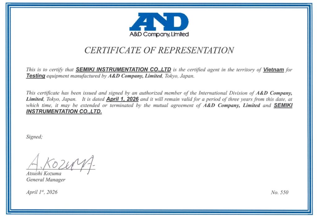 SEMIKI là đơn vị chuyên nghiệp tại Việt Nam cung cấp các giải pháp đo lường và thử nghiệm vật liệu, đặc biệt là đại lý chính thức tại Việt Nam phân phối các dòng máy kéo vạn năng (UTM) của hãng A&D (TENSILON).